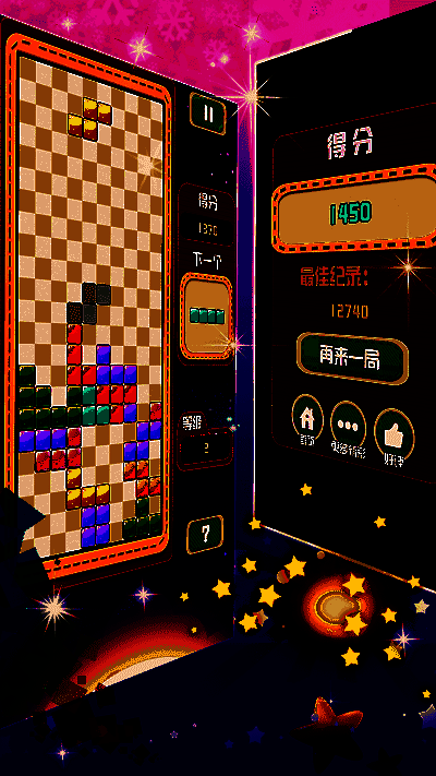 1、经典的俄罗斯方块玩法,易学难精,玩家可以迅速上手,但要想取得高分则需要不断提升技能;