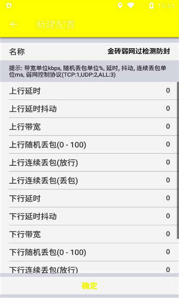 1、设置网络参数:打开应用后,在对应界面中输入需要模拟的网络参数,例如上行带宽、随机丢包率等。