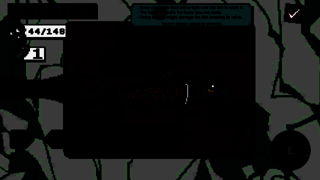 2、前往最左边的钓鱼台,点击E开始钓鱼。钓鱼线会自动下降;使用左右方向键来控制它的方向。用鱼钩撞击一条鱼,对它造成伤害,伤害足够后将它钓上来。
