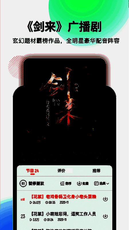 1、支持在线收听和离线下载。