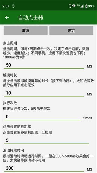 4、实时设置手机点击频率、手指按下时间、手指弹起时间设置(一般不用)等等。
