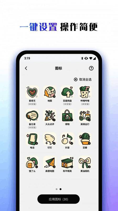3、让你的手机与众不同,各种风格的图标、壁纸、主题等你来尝试。