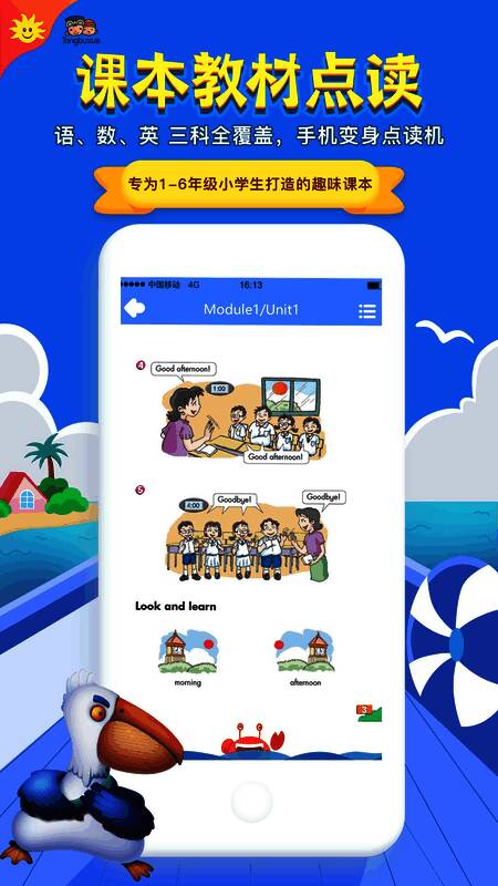 2、即时点击阅读:提供英语教材即时点击阅读功能,让孩子自主学习更加方便高效;