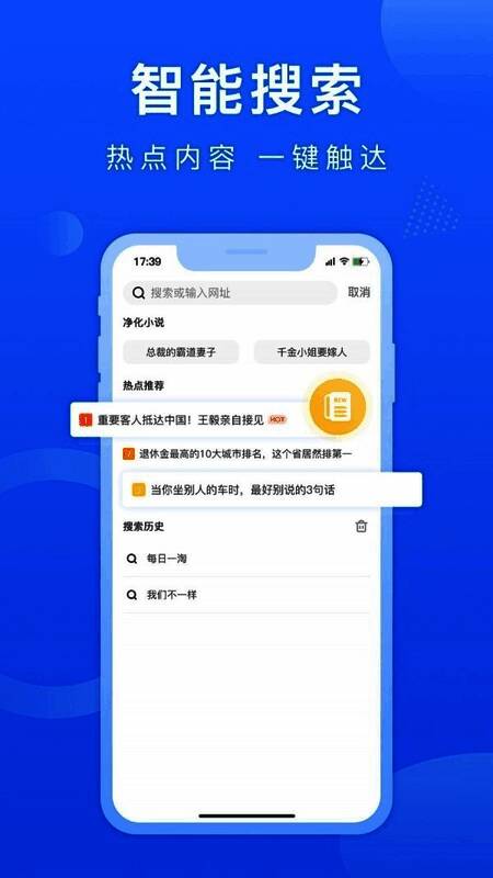 1、智能阅读你的兴趣,为你推荐个性化内容,支持各大主流搜索引擎,搜索更快更准确;