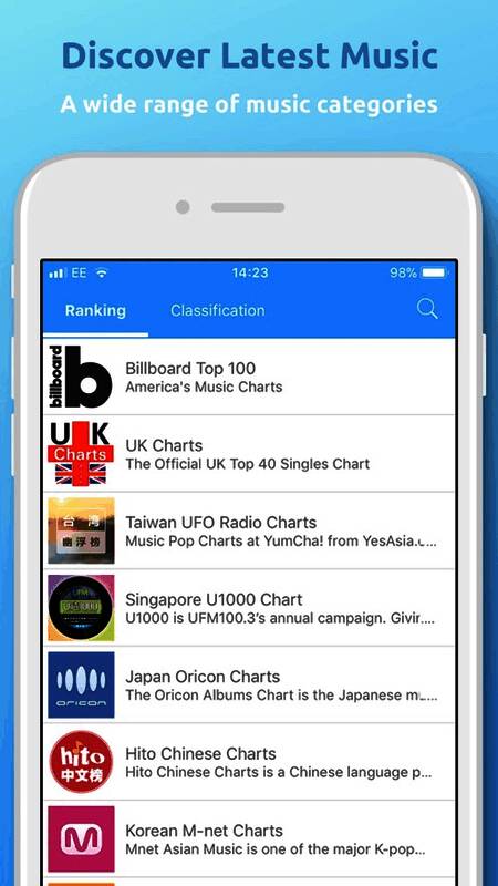 2、免费国际榜单:提供多种国际音乐榜单,无VIP可听,让用户紧跟音乐潮流;