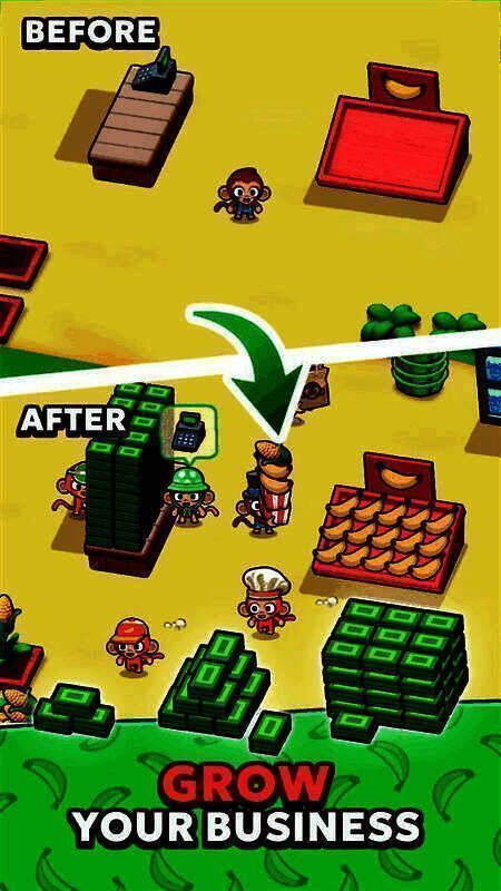 4、酷炫的连锁扩张感:从街头摊位到明星超市,解锁分店地图,感受“猴子商业帝国”崛起的成就感。