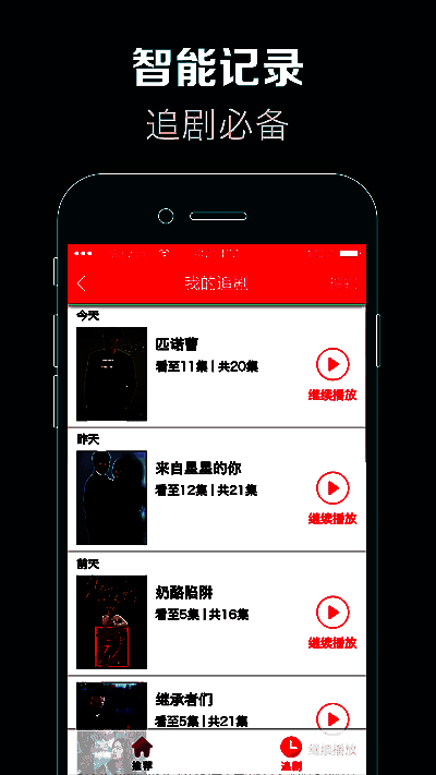 进入“我的追剧”后,里面就是自己收藏的电视剧,可以点击继续播放接着看。