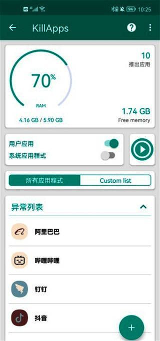 KillApps专业版是一个非常强大的任务进程杀手。其实我们大部分手机遇到上述问题都是因为后台运行了很多应用,而这个软件可以帮助我们阻止这些自动重启和查杀任务。而且关闭应用有助于消除所有应用的延迟,当然也可以加快游戏速度,提升游戏性能,让大家轻松使用和玩手机。还能够一键关闭所有正在运行的应用程序。感兴趣的朋友不要错过下载。