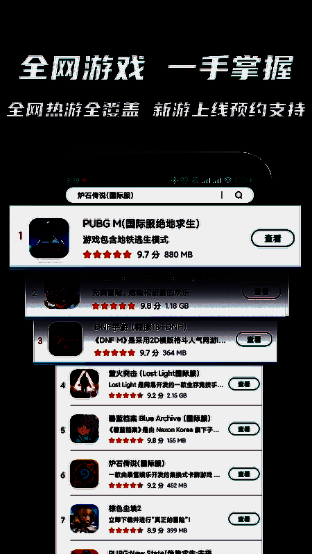 支持全球热门手游,新游抢先预约体验