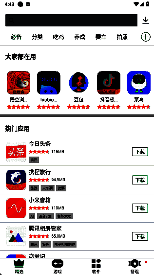 4、此外,客户端还提供了多种分类排名和软件游戏管理功能。