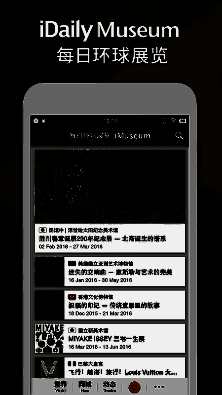 iMuseum官方版专注于全球艺术展览和博物馆活动的生活方式App,让你随时了解身边正在进行的精彩展览,制定自己的展览计划,记录和分享你的照片。