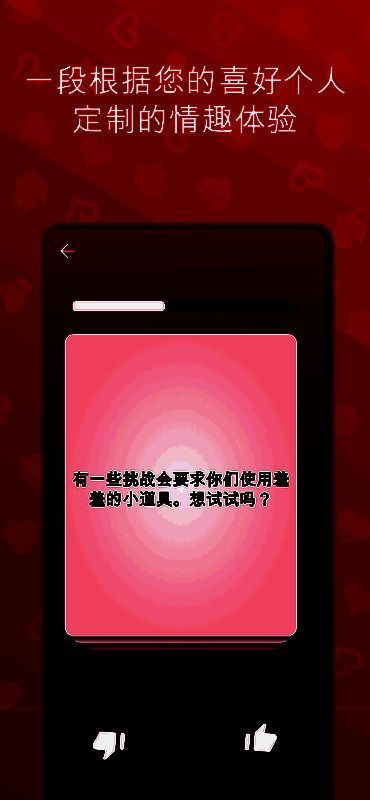 游戏支持玩家自定义问题内容与难度级别,随时调整设定以贴合实际需求。无论是想了解对方的小秘密,还是测试彼此的默契程度,都能在这里找到合适的问题。此外,系统还提供超过1000项冒险挑战任务,并按照难度等级排序,确保每对情侣都能找到属于自己的专属体验。