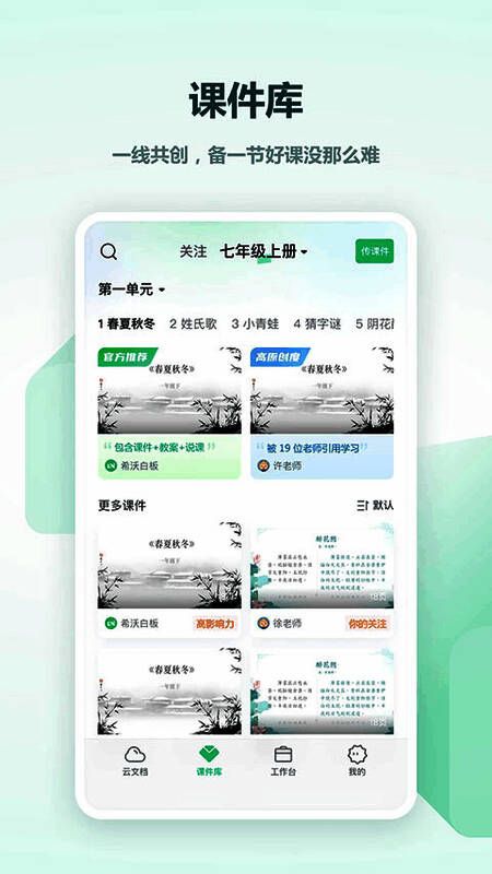 -用户可获得免费云空间用于上传/存储/获取课件。