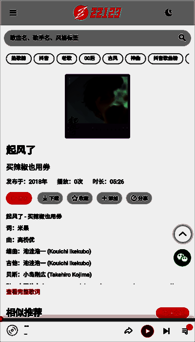 zz123音乐在播放过程中能够自动下载并显示歌词,让用户更好地理解歌曲内容。同时,具备社交分享功能,可将喜爱的音乐一键分享至各大社交平台,与好友共享音乐乐趣。该应用还提供多种播放模式,包括随机播放、单曲循环、顺序播放等,满足不同场景下的听歌需求。智能识别与个性化推荐系统则能根据用户的喜好推送更符合口味的歌曲,提升整体使用体验。