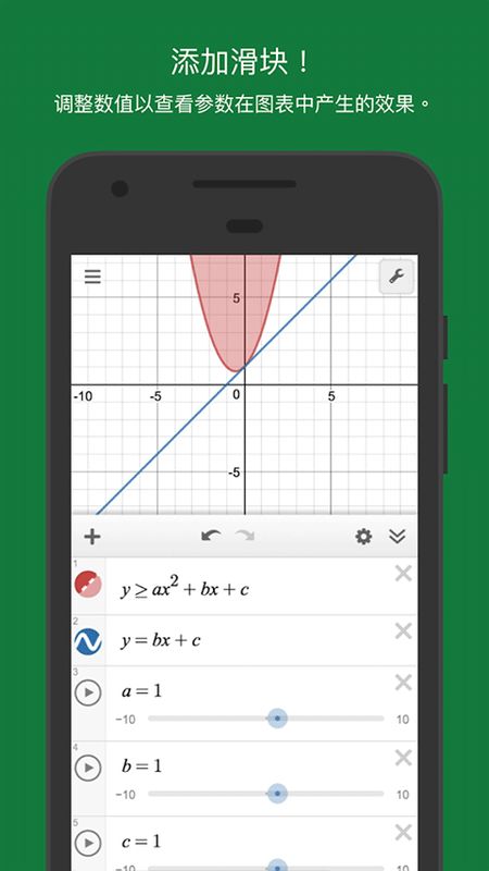 4、使用简单而强大的绘图工具。可以实时绘制从直线和抛物线到回归和导数的各种方程。