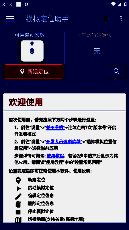 软件功能很简单,但可以随时打开或关闭模拟定位。 这不仅有助于部分合作伙伴保护定位隐私,也有助于安卓开发者测试手机的定位切换功能。 需要的用户可以在本网站免费下载使用。