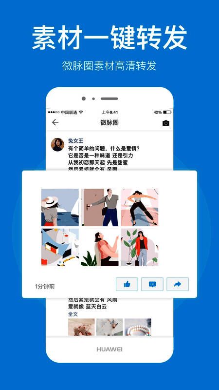 4、【素材一键转发】微脉冲朋友圈,也就是动态素材,可以一键转发到自己的朋友圈!