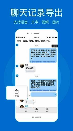 3、用户不仅可以导出文本内容,还可以存储语音等多媒体信息,以便与其他朋友轻松共享。