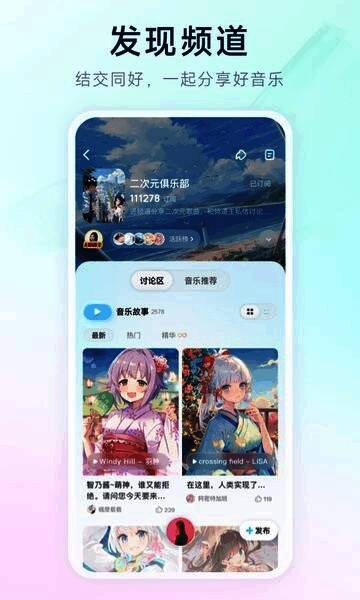 2.每个人的音乐频道,创造自己的音乐空间,用音乐记录生活,以更有趣的方式分享音乐,收获同样的品味。