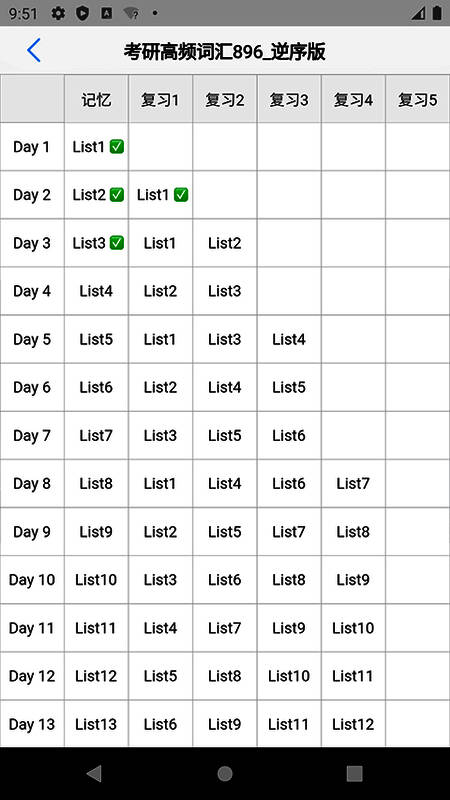 3、「学习计划表」:根据艾宾浩斯记忆规律曲线,持续记忆和不断复习;
