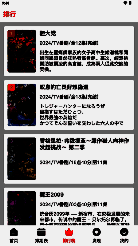 2.该软件汇集了丰富多样的国内外动漫资源,满足不同用户的观看需求。无论是热血沸腾的运动、在另一个世界的冒险,还是治愈时间,用户都可以在这里找到他们最喜欢的动漫类型。