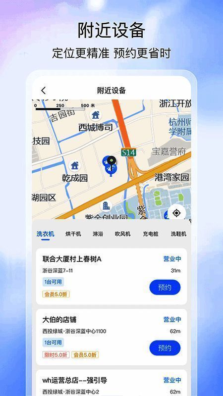 二、选择附近设备地点,导航到店后点击立即扫码,并扫描设备上的二维码后即可使用设备
