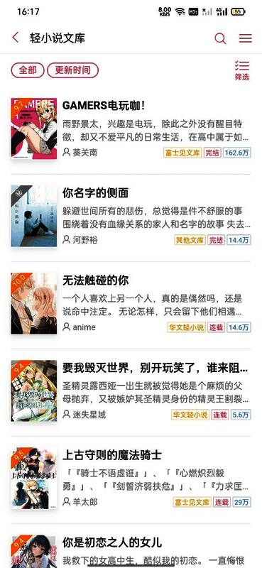 各种不同风格的轻小说都可以在这里找到,你可以直接点击阅读。