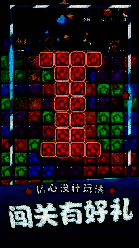 3.消除测试操作:不同图案的星星都可以快速消除,极大的考验了玩家的操作技巧和反应速度。