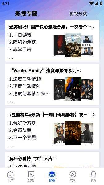 聚集了大量高分影视剧、综艺动画片、生活纪录片,用户可以根据自己喜欢的类型自由观看电影。