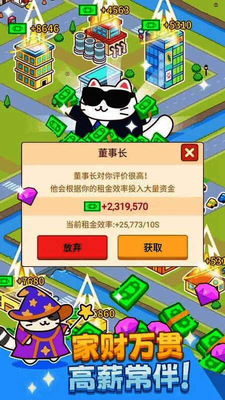 3.游戏内容丰富,玩家可以通过猫员工逐步获取整个地图,实现商业目标。