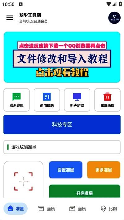 龙少工具箱官方下载入口APP提供了丰富好用的游戏工具,免费使用更加的方便稳定。该软件可以自动扫描移动设备数据,包括手机型号、安卓版本、处理器、分辨率等,并给出目标、画质、比例等相应的程序,帮助用户快速选择最佳设置。这里有软件教程,不懂的可以查看功能设置,白也可以轻松上手。为不同玩家提供了丰富的目标风格,兼容稳定,会根据用户的机型智能,推荐适合的专属画质。你也可以自定义解锁比例。