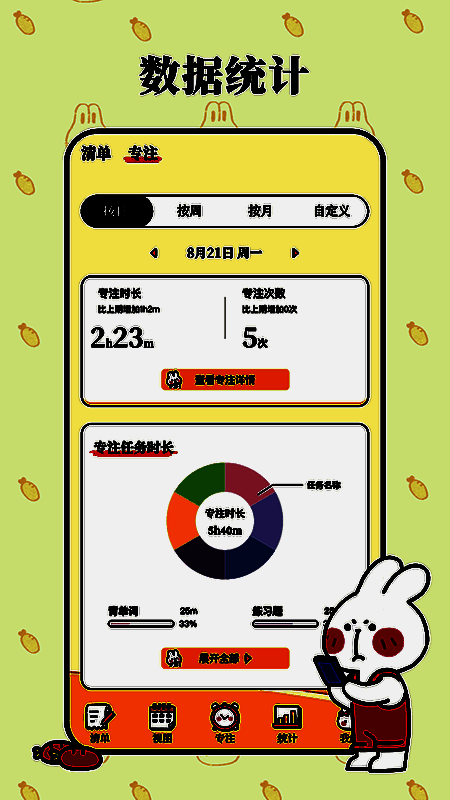 4、[统计数据] 看到你打卡记录和计时的点点滴滴,我很有成就感。