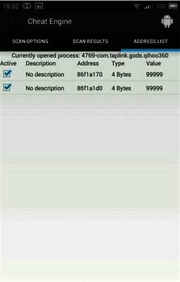 然后,将值的地址添加到列表选项卡中的列表4中,然后单击“激活”按钮。