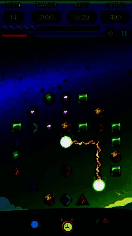 1、玩家需要在限定的时间或步数内,通过连线相同颜色的宝石将它们消除,完成关卡目标;