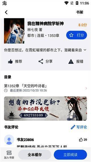 进入《9x阅读器2025官方正版》主界面后,点击“书城”即可浏览各类小说与漫画资源。选择感兴趣的书籍后,点击“立即阅读”便可直接进入正文页面。翻页操作简单直观,用户只需轻触屏幕即可流畅翻阅。阅读完毕后,点击返回按钮还能一键将该书加入书架,便于下次继续查看。