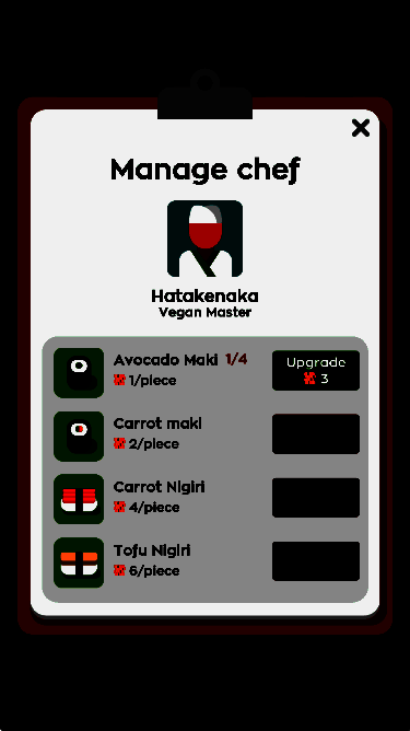 游戏的重点是战略和经营管理,所有的决定都会影响你的业绩和发展。通过努力经营,你可以成为顶级寿司连锁店的老板,展示你的经营才能。总之,寿司大亨”是一款休闲有趣的模拟经营游戏,可以让您体验寿司店经营的乐趣和挑战。无论是寿司爱好者还是游戏迷,这个游戏都能带来无尽的娱乐和满足。