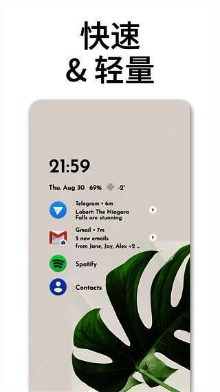 NiagaraLauncher2025最新版是一个优秀的应用快速启动工具。通过这个软件,你可以在主界面添加一些常用的应用,打开起来会更加方便快捷。还可以把平时不用的软件藏起来,软件用起来也很简单。你只需要拿起手机,用拇指点击屏幕边缘,就会激活一个位置波动的滚动条。按住它可以上下滑动。与大多数其他启动器不同,Niagara Launcher将收到的通知直接显示在您的主屏幕上,并支持快速回复和滑动操作来扩展通知功能。感兴趣的朋友不要错过下载。