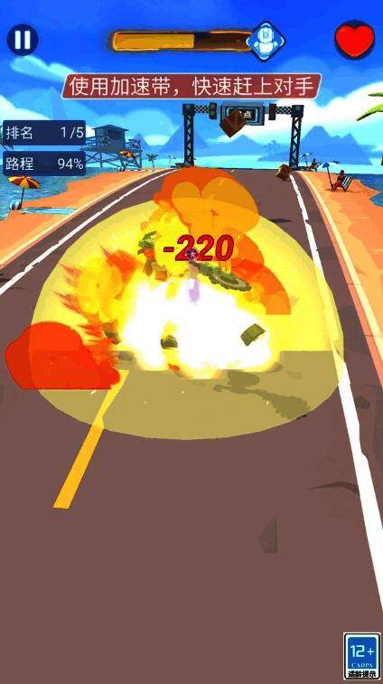 游戏提供涵盖海滩、水族馆、都市等五大主题赛道,每条路线都设有丰富的障碍物与地形互动元素。45款特色载具各具属性,包括武器槽数量、变形速度与防御强度等差异化设定,满足不同玩家的操作偏好与战术需求。