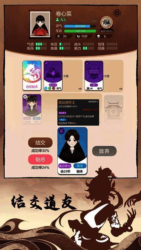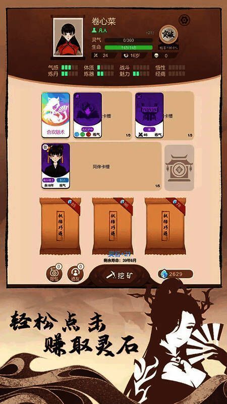 1、创新的游戏整合:集卡与角色修炼相结合,玩家可以通过打开卡包获得光环和装备卡,提升境界和战斗力,体验从凡人到巨人的成长过程。