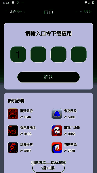 1、打开野草助手app,输入口令,点击确定,具体口令参考下文;