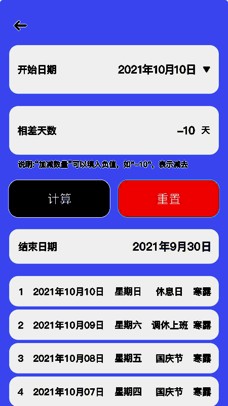 1.简洁的界面:直观易用的用户界面,可让您快速计算日期。
