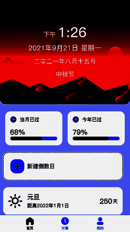 天数计算器最新版app是一款功能强大且用户友好的计算器软件。天数计算器最新版app该软件为用户提供了多种主题风格,玩家可以根据自己的喜好选择不同的主题,任何需要计算天数的计划都可以倒计时,用户只需使用该软件计算周期即可,旨在满足用户在日常生活和工作中对日期计算的需求。软件不仅界面简单直观,还提供各种实用的日期计算功能,包括日期间隔计算、日期加减、假期查询等,提高日常生活和工作效率。