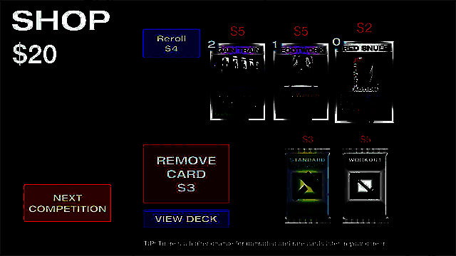 1、在游戏中,玩家主要通过打出卡牌来进行健身训练,每张卡牌的使用都会消耗左侧显示的能量值。