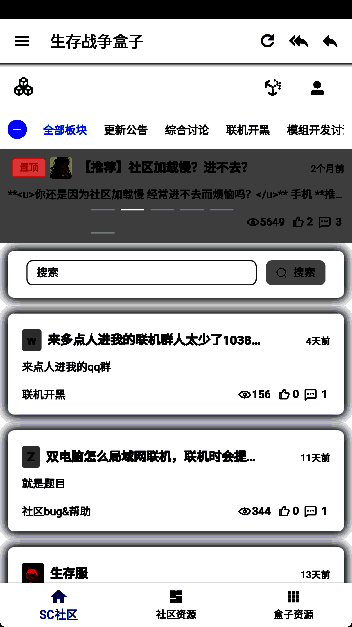 scbox生存战争盒子还提供各种信息攻略。从软件上,你可以直接去bilibili、Tik Tok和百度贴吧的游戏区。在这里,你可以找到很多志同道合的朋友,以及他们分享的游戏经验和信息,可以解决你在游戏中遇到的各种问题。有需要的可以免费下载体验。