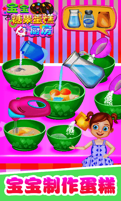 1、宝宝糖果蛋糕厨房游戏是一款面向儿童的烹饪模拟游戏,玩家可以在游戏中制作各种各样的糖果和蛋糕;