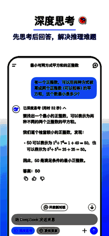 DeepSeek是一款功能强大的AI智能算法工具,旨在为用户提供高效便捷的智能服务。该应用结合了深度思考和在线搜索两大核心功能,支持多语言输入,具有强大的数据处理和技术文档解析能力。