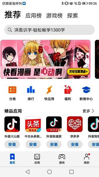 华为应用商店官方下载安装APP可以给用户带来非常便利的资源下载服务。提供应用和游戏两个版块,有分类、排名、专栏等细分,拥有大量的应用供用户选择下载,资源更齐全!提供全方位的高品质应用,精选活动、礼包等应用福利,挖掘应用精彩内容,给您全场景、多终端、高品质的体验。该软件拥有大量的应用程序、游戏资源,安全稳定,下载速度快,还具有丰富的活动效益。