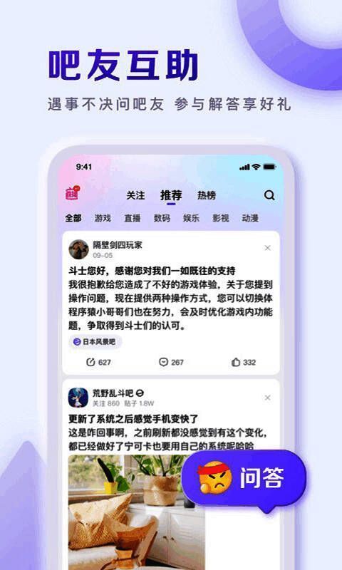 百度贴吧安卓版是一个丰富多彩的社区论坛,为用户提供了沟通、共享和讨论的平台。无论是获取信息、交朋友,还是展示自己的见解,百度贴吧都能满足你的要求。请加入百度贴吧。请与全世界用户一起探讨感兴趣的话题,开始有趣的社交体验。百度贴吧具有简洁直观的界面设计,便于用户浏览和使用。另外,为了更好地找到用户想要的内容,还提供了关键词搜索、帖子分类、评论等实用功能。此外,贴纸支持计算机、手机、平板电脑等多种设备和平台,使您能够随时随地访问和参与讨论。感兴趣的朋友不要错过下载。