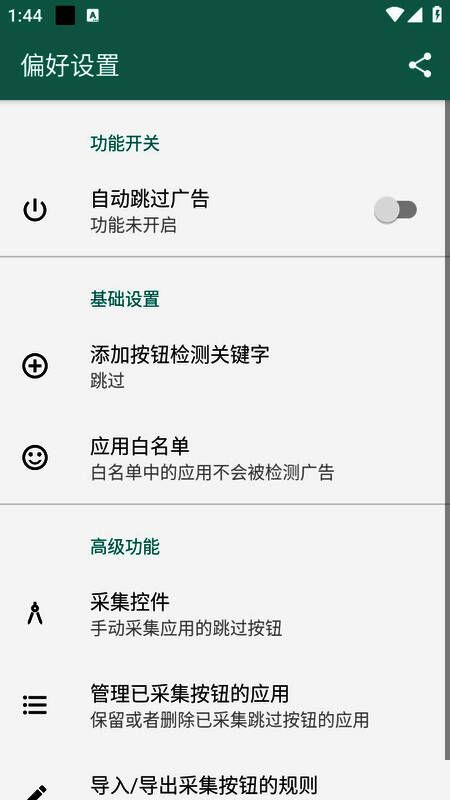《雷跳跳2025》提供两种高效跳过广告的方式:一是通过“关键字识别”,即根据按钮上的关键词(如“跳过”、“关闭”等)自动点击;二是“指定规则跳过”,即通过识别应用中的控件进行跳过操作。用户可自行采集控件规则,也可以导入他人分享的规则,进一步提升广告跳过的准确率。