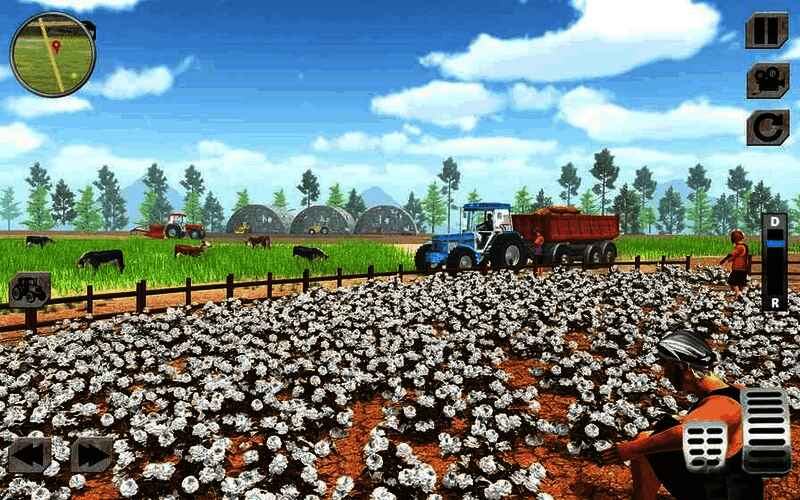 1、玩家通过触屏操作驾驶拖拉机,控制加速、刹车和转向,完成各种农业工作,如耕地、收割、运输等;